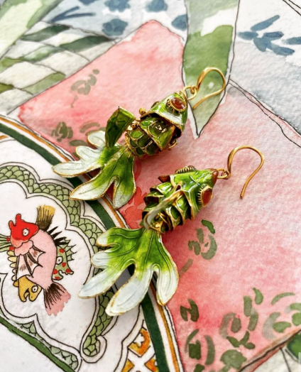Emerald fish Ear rings
